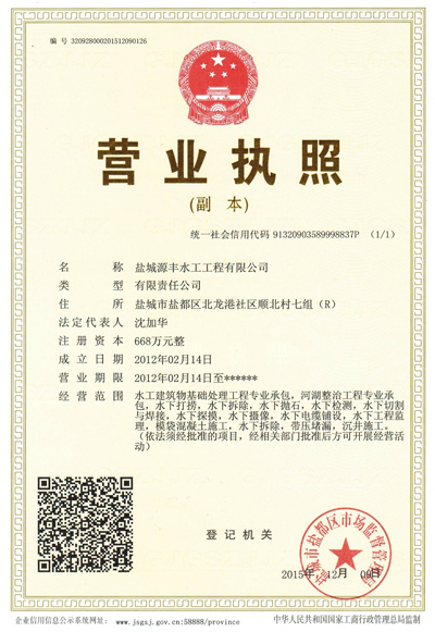 鹽城源豐水工工程有限公司是一家專業(yè)從事水下作業(yè)的股份制企業(yè),公司多年以來,堅(jiān)持以人為本,誠信經(jīng)營,憑借質(zhì)量、效率、信譽(yù)的作風(fēng)贏得客戶的信賴和贊譽(yù)。
